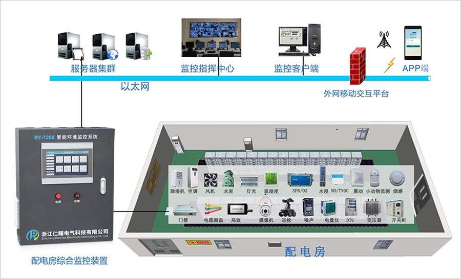变电站在电网中作为电力的核心,具有建设数量多、地域分布广的特点,担负着所在区域的供电以及电力调度任务,变电站的安全稳定运行直接影响区域用电安全,对社会的生产生活至关重要。变电站视频及环境监控系统是电网公司变电站智能化及安全生产的重要组成部分,为电网的安全稳定运行提供了重要保障。随着智能化变电站、变电站无人值守以及变电站运行集中监控及远程调度操作等电网运行模式的推进,变电站视频及环境监控系统在电网运行中提供了可视化的界面,系统重要性更加突出。已建成的常规变电站均未配置辅助控制系统及环境控制系统,变电站内环境参数未考虑数据采集及在线监测,配电室内环境控制均采用人工控制方式,由运行人员根据外部环境条件,到配电室现场巡视及操作,在各配电室内通过人工控制空调运行模式、风机启停、百叶窗开关等方式地控制配电室环境,无法实现自动控制和在线监测。而采用变电站环境监控系统配备数据采集单元、环境控制(温湿度)单元、照明控制单元、火灾报与消防系统接口及一体化智能控制管理平台,实现了配电室内的温度、湿度、水浸、SF6浓度、噪声、H2S等环境信息进行实时采集、处理和上传,对配电室内环境状态、空调、风机及照明等辅助设施实现在线监测,根据各种环境条件及运行环境要求,通过一体化环境管理平台实现站内辅助设备进行联动,完成变电站站端的环境智能控制